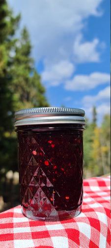 So it starts with a shot of bourbon, adds a little pain in the form of fresh jalapenos, and ends up black(berry) and blue(berry)... it's a Kentucky Bar Fight! This jam is smashing on toast, a sizzling steak, or sandwiches. It will punch up whatever you serve it with and makes a wonderful housewarming or hostess gift. This is a complex recipe and it requires a time-consuming cooking process. The results are worth it!
