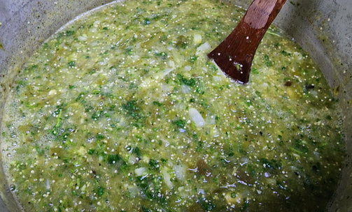 Mr Greenjeans Tomatillo Salsa Verde is just so GREEN with a fresh roasted taste that pops! Use it on huevos rancheros, tortilla chips, anything with cheese or chicken, enchiladas, fish... You can use your imagination but I think this is one of the few things I make that wouldn't be good on ice cream.
