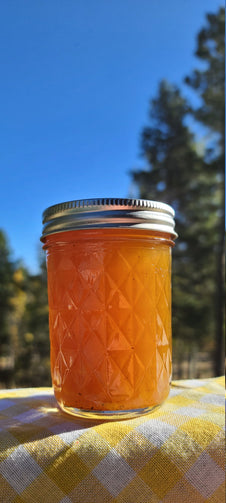 Using a Dory Dozens Delights-developed recipe (say that four times fast!), the fruit and the Maker's Mark bourbon are the heroes on your palate. Ingredients include: hand-squeezed Valencia orange juice, hand-squeezed lemon juice, pure Rocky Mountain spring water, cane sugar, Maker's Mark Kentucky bourbon whiskey, finely-grated orange peel, fruit pectin, ground allspice, ground cinnamon, and ground cloves.