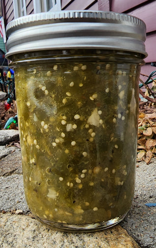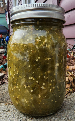 Serrano Tomatillo Salsa Verde is just so GREEN with a fresh roasted taste that pops and a blast of heat! Use it on huevos rancheros, tortilla chips, anything with cheese or chicken, enchiladas, fish... You can use your imagination but I think this is one of the few things I make that wouldn't be good on ice cream. My taste tester said that it's medium-hot, or Colorado medium, with a bold heat up front that does not linger long enough to make you pop a sweat.